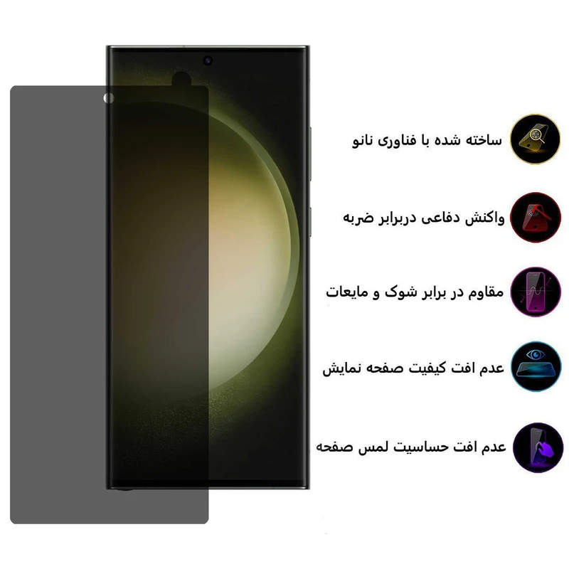 افرادی که به فکر رعایت حریم شخصی خود هستند و دوست ندارند اطلاعات شخصی آنها را کسی نبیند،میتوانند از بهترین گزینه لوازم جانبی گوشیهای هوشمند یعنی گلس پرایوسی استفاده کنند و نه تنها نمایشگر خود را ایمن نگه دارند،بلکه اجازه مشاهده صفحه را به دیگران نیز ندهند،نگران به خطر افتادن اطلاعات شخصی خود در مکانهای عمومی هستید؟آیا از دیده شدن صفحه نمایش گوشی توسط افراد کناری خود رنچ میبرید؟در این شرایط بهترین راه خرید محافظ صفحه نمایش حریم شخصی بوف مدل Silicone-Privacy است.امروزه کمتر کسی است که با مواد سیلیکونی سر و کار نداشته باشد یا آن هارا نشناسد.سیلیکون ها موادی هستند که به داشتن لایه خارجی نرم و تا حدودی انعطاف پذیر و همچنین مقاومت بالا در برابر ضربات و ماندگاریشان معروفند و در صنایع مختلف بسیار پرکاربرد می باشند . حال متخصصین بوف توانسته اند تا به کمک علم نانو تکنولوژی محافظ صفحه نمایش هایی مرغوب و بسیار باکیفیت را از مواد اولیه سیلیکون بوجود آورند . به آن صورت که هم خواص سیلیکون مانند پوشش خارجی نرم و مقاومت بالا در برابر ضربات و ضد لک و خش و دافع مایعات بودنشان حفظ شود و هم ساختاری شفاف و بلوری به خود بگیرند تا بتوان از آن به عنوان ماده اولیه ای مرغوب اینبار در صنعت ساخت محافظ صفحه نمایش یاد کرد . محافظ صفحه های سیلیکون با دارا بودن خواصی مانند انعطاف پذیری و خمیدگی جزئی ، مقاومت بالا در برابر ضربات و شوک ، ضد خط و خش و دافع مایعات بودن و سطح خارجی تاحدودی نرم که باعث لذت در کارکرد با گوشی همراه می شود و حتی به حساسیت لمس صفحه نمایش کمک میکند به یکی از بهترین مدل های محافظ صفحات تبدیل شده اند که طرفداران بسیاری نیز پیدا کرده اند . محافظ صفحه های بوف به کمک علم نانو با توجه به مدل گوشی های مختلف با دقت فراوان برش دهی و قالب سازی شده اند تا بتوانند به طور کامل سطح صفحه نمایش گوشی را در برگیرند و از آن محافظت نمایند.این لایهی نرم و منعطف با قدرت خمیدگی بالا نصب راحتی دارد. کافیست صفحه نمایش را تمیز کنید. سپس چسب محکم آن به خوبی به همهی قسمتهای صفحه نمایش میچسبد..این گلس حریم شخصی دارای تکنولوژی میکرو لارو میباشد، قابلیتی که این فناوری دارد این است که باعث میشود نور تلفن فقط از زاویه های مستقیم و صاف دیده شود.نصب این گلس بسیار آسان میباشد.